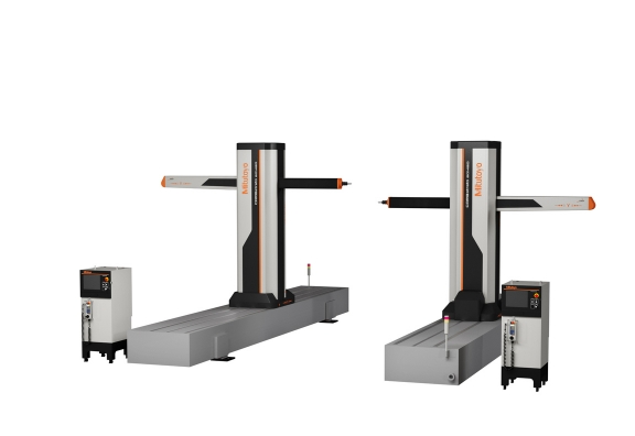 • 有單懸臂和雙懸臂兩種可選項。單懸臂型利用單臺設備完成工件測量;雙懸臂型將工件放置于兩臺同步控制的測量機之間測量,適用于對精度要求更高的大型工件檢測。