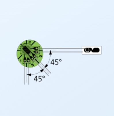 3線式時的0°: 紅色, 90°: 黃色,45°: 藍色的條紋。各種顏色均表示為S。