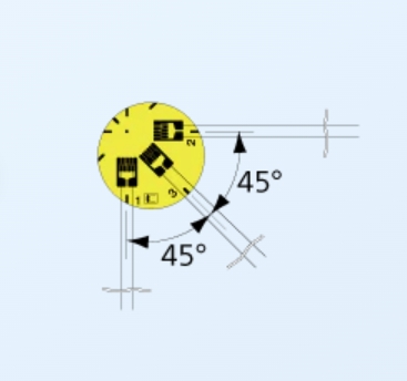 3線式時的0°: 紅色, 90°: 黃色,45°: 藍色的條紋。各種顏色均表示為S。